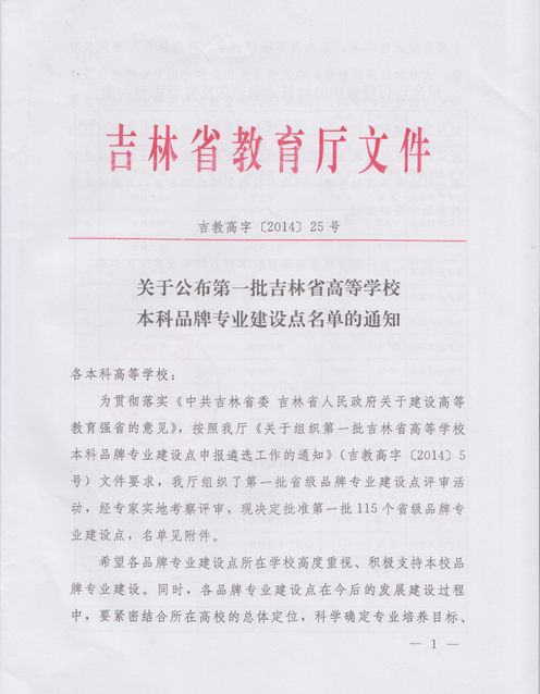 根据《吉林省教育厅关于第一批高等教育本科品牌专业建设点遴选工作的通知》(吉教高字〔2014〕5 号),吉林省教育厅组织了第一批省级品牌专业建设点评审活动。2014年5月,吉林省教育厅进行第一批品牌专业评审,吉林省教育厅发布文件(吉教高字[2014]25),批准第一批115个省级品牌专业建设点,永利集团会计学专业被评为第一批吉林省高等教育本科品牌专业建设点。