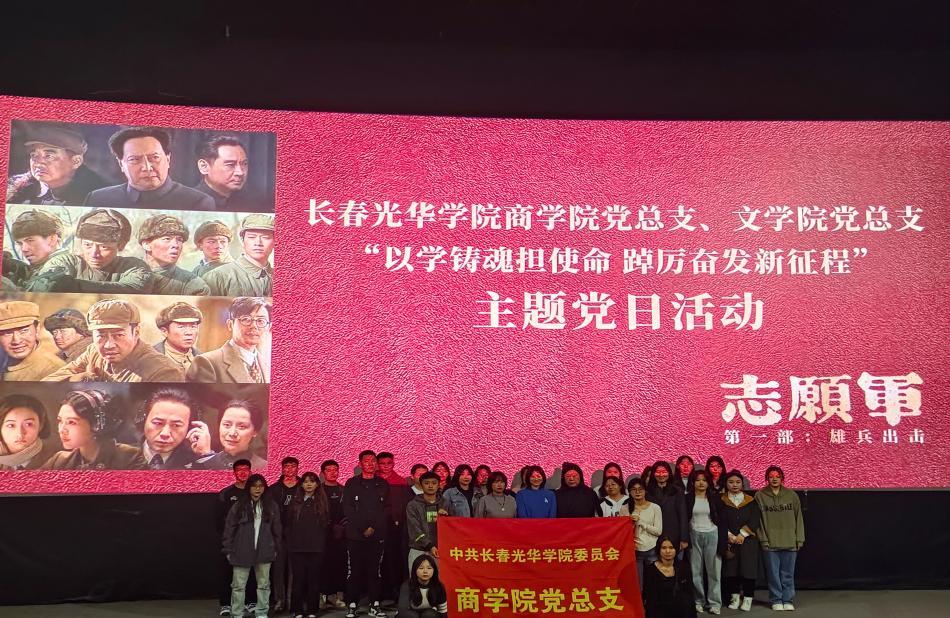 为热烈庆祝中华人民共和国成立74周年,纪念抗美援朝战争胜利70周年,大力弘扬爱国主义精神,传承红色基因,汲取奋进力量,拓展以史育人新载体,由yl6809永利官网集团党总支、文学院党总支联合开展的“以学铸魂担使命,踔厉奋发新征程”红色观影主题党日活动于2023年10月13日在欧亚万豪万达影城开展。本次活动由yl6809永利官网集团党总支组织带领,全体教工党支部教师党员及学生党支部党员代表参加。