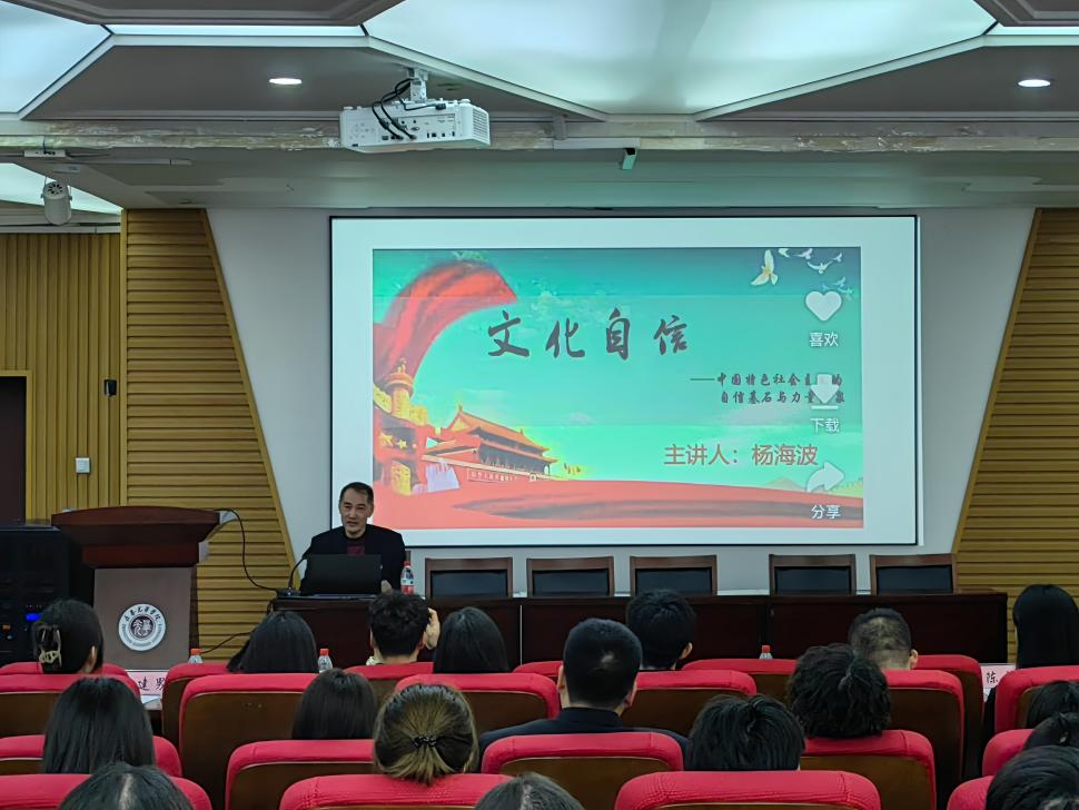 开班仪式结束后,杨海波团长以《民族之魂——文化自信》为题作党课第一讲。他从什么是文化自信、为什么要坚定文化自信以及当代大学生应该怎么坚定文化自信三个方面深刻解读了文化自信的内涵和意义。整场报告主题鲜明、内容丰富、通俗易懂、感染力强,赢得了在场学员的阵阵掌声。