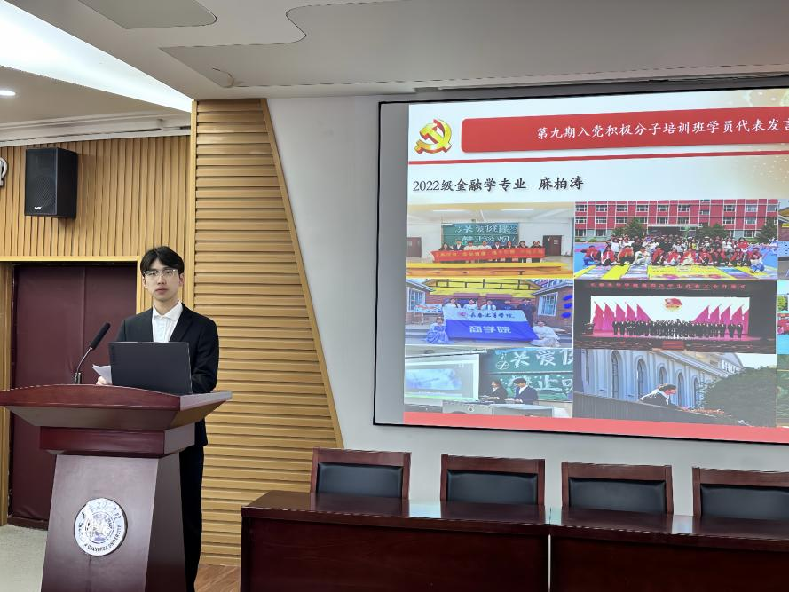 随后,2022级金融学专业学生麻柏涛作为学员代表发言,他郑重承诺将用心学习、坚定理想信念、奋力拼搏,争取早日加入中国共产党。