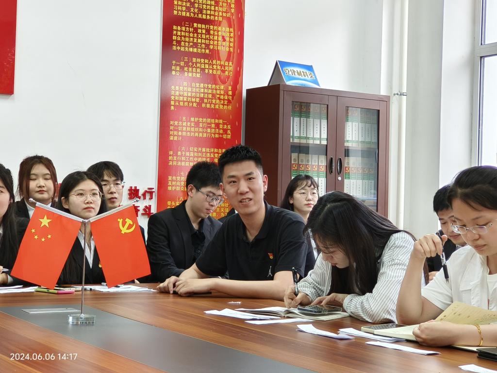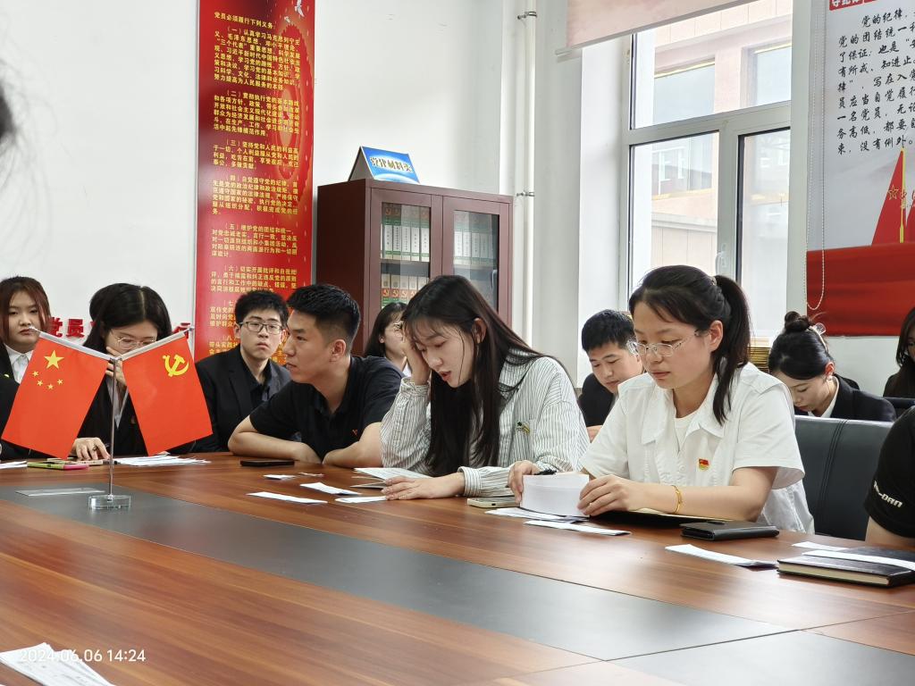 2024年6月6日,yl6809永利学生党支部在205党建活动室召开预备党员发展大会。出席本次会议的有yl6809永利党总支副书记王皓田、yl6809永利团总支书记薛佳怡、yl6809永利全体辅导员,学生党支部全体党员参加会议。会议由学生党支部书记程琳同志主持,会议秉持“公平、公正、公开”的原则,严格按照各项程序对崔佳等14名同志的入党问题进行讨论和表决。
