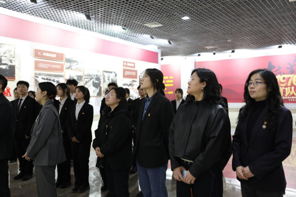 随后,在学生第一党支部书记程琳的带领下,党员师生重温入党誓词。誓言铿锵有力,响彻陵园,展现出新时代青年学子的责任担当。宣誓结束,同学们在工作人员引导下参观烈士纪念馆。馆内陈列的大量珍贵文物、图片及文献资料,生动展现了革命先烈为民族独立和人民解放抛头颅、洒热血的英勇事迹。