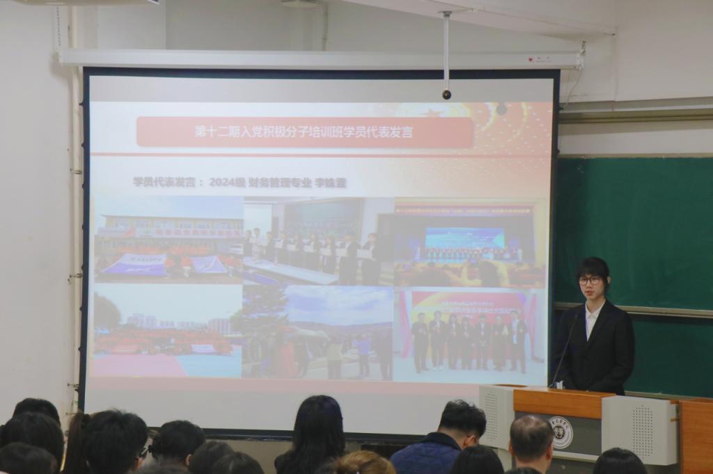 开班仪式在庄严的国歌声中拉开帷幕。活动现场,积极分子学员代表李姝萱率先发言,她不仅表达了向党组织靠拢的坚定决心,更号召全体学员以党员标准严格要求自己,同时主动投身学校迎评工作,做到学业争先、行为规范,以实际行动展现新时代青年的责任与担当。
