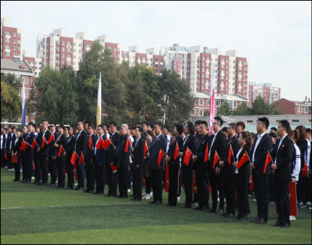 活动伊始,由党委副书记张柏发讲话并宣布活动开始。全体师生,在朝阳下,怀着激动的心情,升国旗,奏国歌,行注目礼,庄严肃穆,为祖国70年华诞而歌。70年的砥砺前行,不禁使21世纪的学子有了新的感触,yl6809永利优秀学生代表王红妍同学代表全光华学子献上自己的一份爱,表达了自己对于祖国的热爱之情,党委书记刘炳恩强调青年一代的重要性,不负伟大时代,出发仍是少年。
