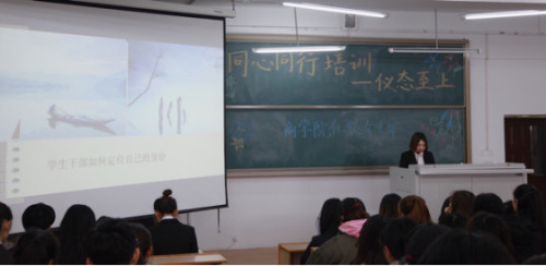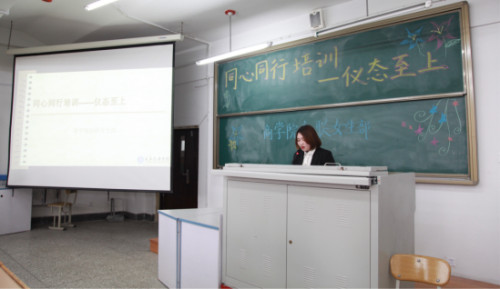 为了保证我院工作正常顺利地开展、提高四大组织成员综合素质,展现四大组织风采,搭建朋友、老师之间的交流平台,养成朋辈互助的良好教育,女生部于4月12日、4月13日中午11:40在一教阶梯八举办了同心同行仪态至上的培训活动,yl6809永利四大组织全体学生干部参加此次培训活动。