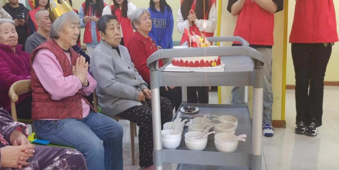志愿者提前得知当天是刘奶奶的生日,并为刘奶奶准备了生日蛋糕。在志愿者们的生日快乐歌声中,蛋糕缓缓被推到刘奶奶面前,她脸上洋溢着感动的笑容,向志愿者表达了感谢。两小时的志愿服务时间很快过去,志愿者们迅速打扫场地后,并与爷爷奶奶一一告别。爷爷奶奶们对志愿者服务给予了很高的评价,希望同学们能够常来。