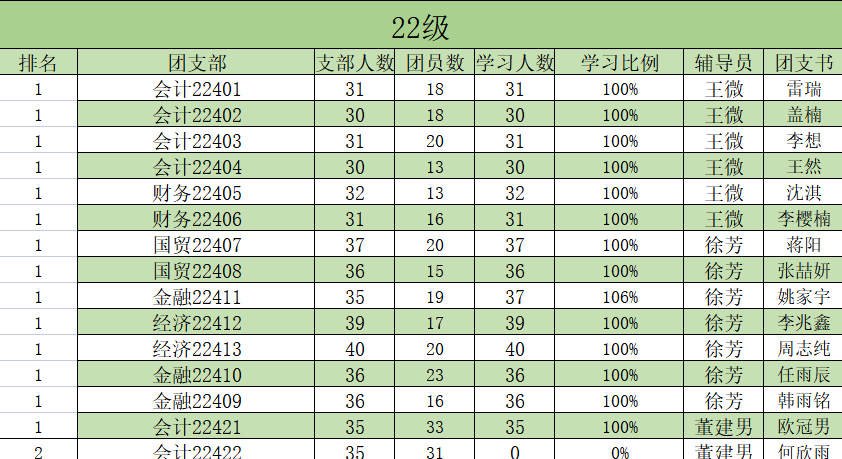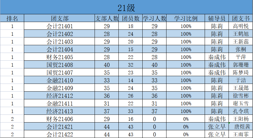 经学院推荐和团总支评选,yl6809永利20级、21级、22级参与率排名如下:第一名,22级;第二名,20级;第三名,21级。现对yl6809永利各个年级的团支部“青年大学习”学习情况排名予以公示,具体如下: