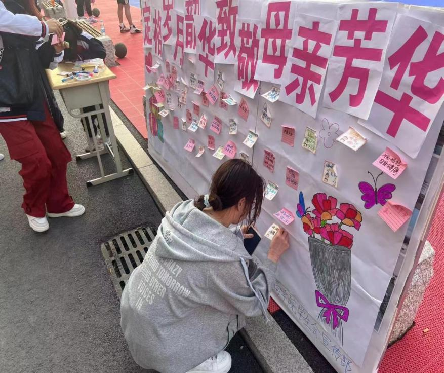 活动伊始,学生会宣传部的工作人员将布置好的展板放在三教门口,并准备彩笔和便利贴,让路过的同学们在便利贴上写下想对母亲说的话。不同的留言传递着同样的幸福,凝聚着共同的愿望,倾诉着相同的话语,展板慢慢被同学们的祝福填得满满当当。借助此次活动让同学们更多地理解到母亲对子女的呵护与支持,并在校园里弘扬中华民族传统美德,做一个优秀的时代青年。