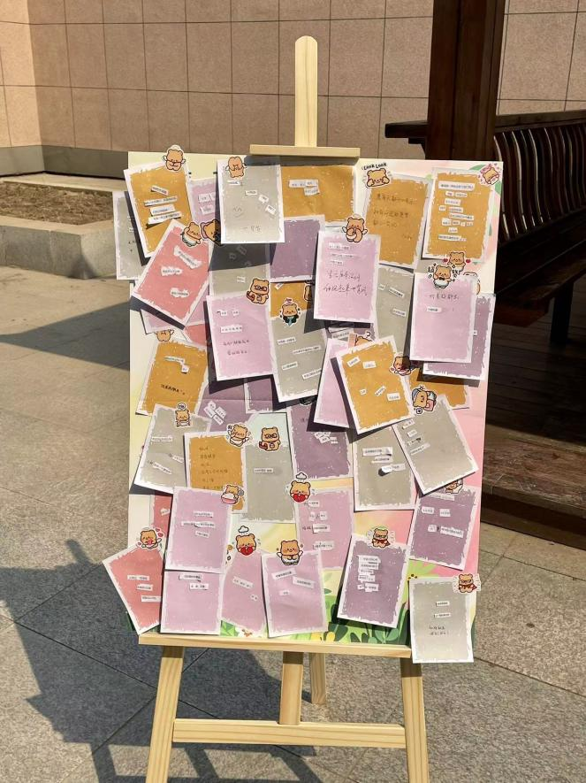 最后,志愿者将同学们创作好的小诗粘贴在展示板上进行展示,参与活动的同学们也纷纷与自己的小诗合影留念,并表示通过本次诗歌创作活动,放飞了自己的思维,提升了思想内涵,也帮助自己体悟到了中华优秀传统文化的精髓。