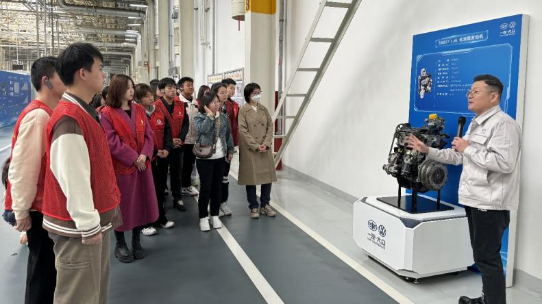 随后,同学们来到了一汽大众发动机制造加工车间,近距离接触了发动机的生产制造,同时也感受了德国发动机制造技术的强大硬实力以及中国匠人的自主研发能力和创新精神。同学们纷纷表示,他们深刻感受到了我国汽车工业的雄厚实力并对此深感骄傲,明白了精湛技艺和严谨态度在汽车制造中的重要性。