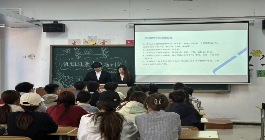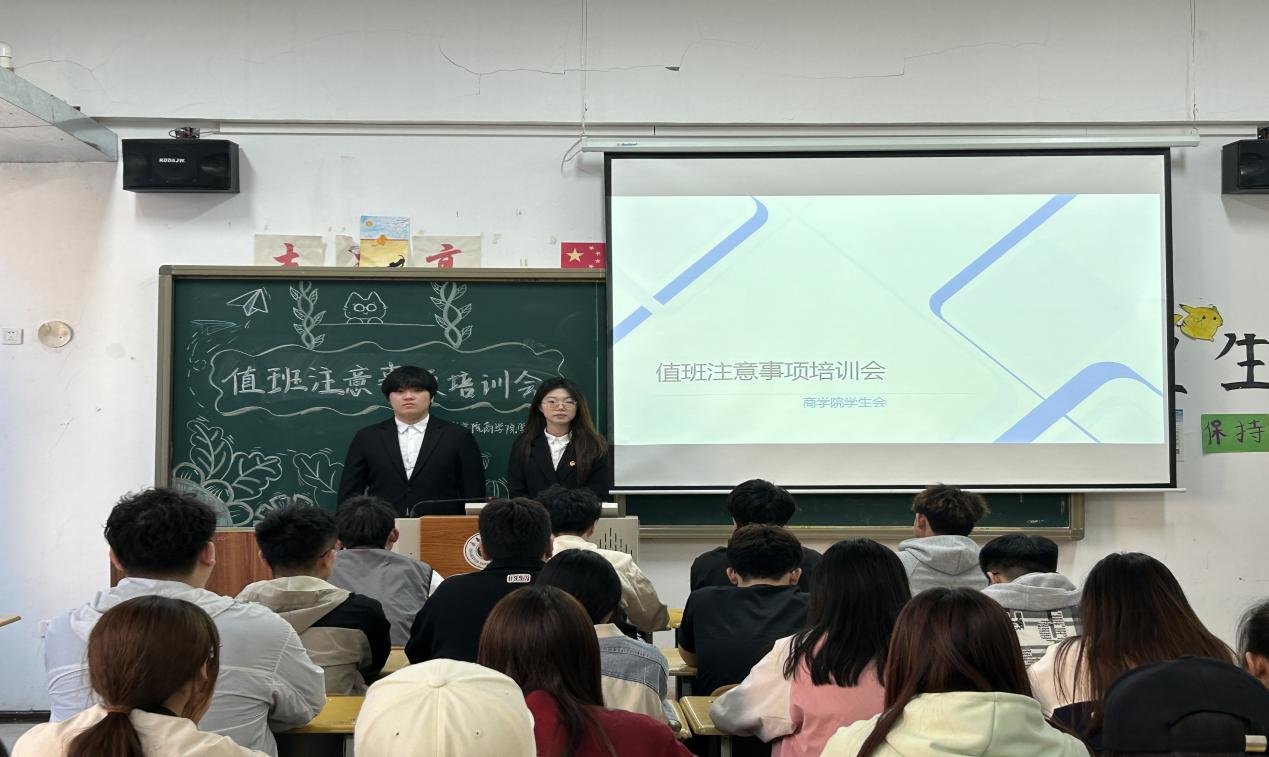 为进一步加强和规范办公室值班管理,确保办公室值班工作有序进行,营造和谐、舒适的办公室环境,yl6809永利官网集团学生会秘书处于5月12日17时在第三教学楼104教室召开了关于学生在老师办公室值班注意事项的培训会。本次会议由学生会秘书处白诗彤和喻俊杰主持各团学组织大一学生参加。