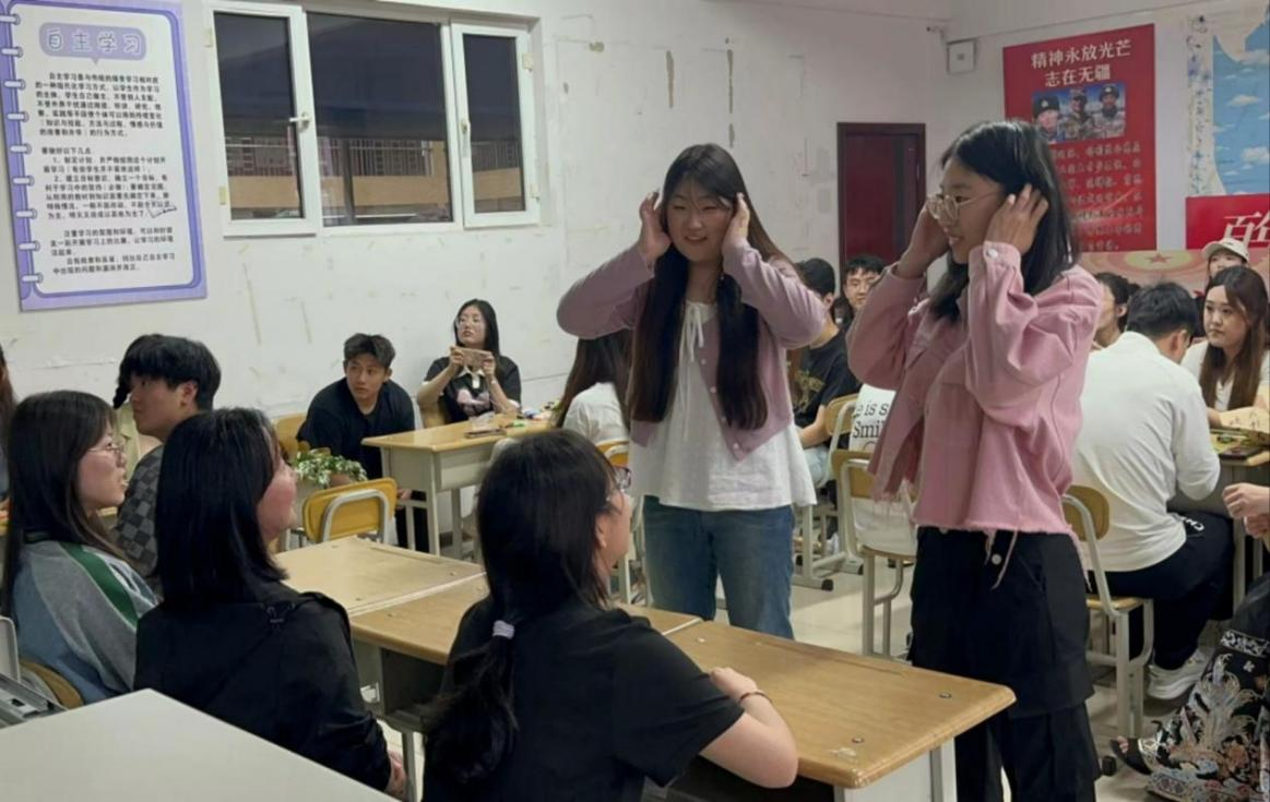 接下来,进入到游戏环节,第一个小游戏为“你划我猜”,每组派出两名代表比划词语的意思,其余同学猜。第二个小游戏为“击鼓传粽”,参加活动所有同学按顺序传递粽子香囊,当音乐停止时,手中持有粽子香囊的同学可以选择回答主持人提问的端午节相关知识或表演才艺。现场气氛热烈,同学们热情高涨,在娱乐的同时促进了同学们对端午文化的了解。