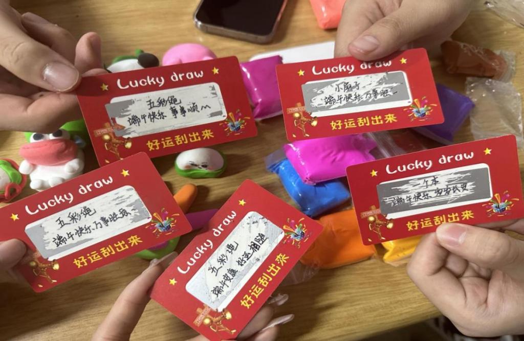 活动在欢声笑语中迎来了尾声,工作人员将端午专属刮刮卡分发给了每一位同学。每一张刮刮卡上都写下了对同学们的美好祝福和不同的小礼品,同学们现场刮开兑换礼物,互相分享喜悦。这不仅体验了刮刮卡带来的惊喜与乐趣,更感受到了温馨的节日气氛。