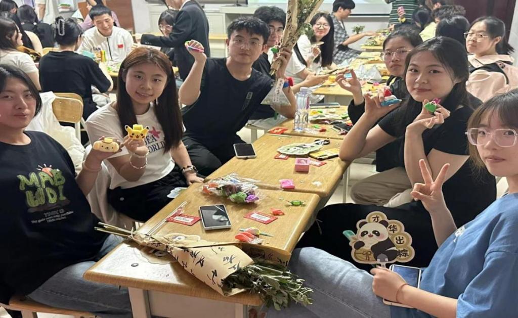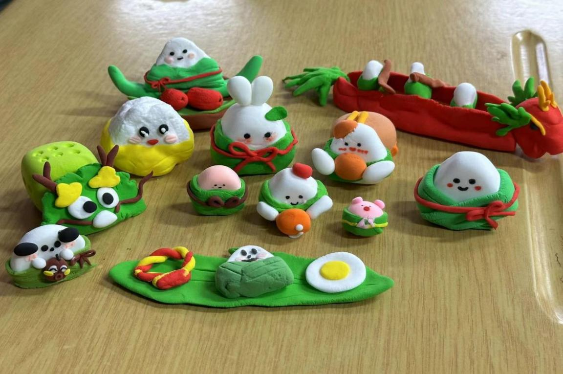 活动进入下一阶段,工作人员发放制作端午手工黏土的材料。同学们在制作过程中充分发挥自己的想象力和创造力,从配色选择到亲手制作,创意流淌,制作出了一个个白白胖胖的粽子黏土、栩栩如生的龙舟黏土、独一无二的端午限定御守黏土。通过这种手工DIY的形式,让同学们亲身体验端午文化的魅力,感受传统文化的深厚底蕴。