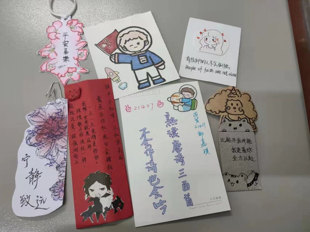 除此之外,同学们也对书签和阅读手账的制作进行评比,最终分别评选出八个优秀作品并予以颁奖。最后,读书小组组长周蕊对近期开展的读书活动进行总结,并希望大家可以坚持下去,保持良好的读书习惯。