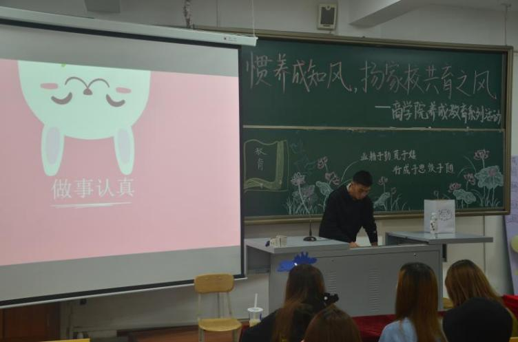 为加强培养学生良好的生活、学习、文明等行为习惯养成,提高学生的思想道德和个人素养,进一步完善养成教育活动体系,推进养成教育工程的建设,营造文明的校园氛围。yl6809永利官网集团于2021年9月26日在第二教学楼116教室面向yl6809永利全体大一新生开展“树习惯养成知风,扬家校共育之风”养成教育活动。