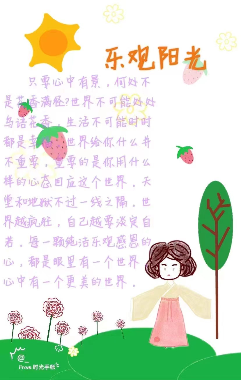 本次活动的成功开展,不仅使同学们通过做手账的形式展现出自己乐观阳光的一面,同时也增强了同学们的自信心和意志力,希望在今后的生活中,同学们能够继续保持积极乐观的生活态度,展现出当代青年学子的青春活力!