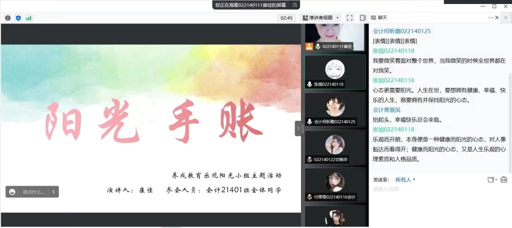 活动伊始,由组长崔佳详细讲解了本次活动规则与流程,在本次手账活动中,小组全体成员需写下与乐观阳光主题有关的词句并绘制成手账,随后与大家分享自己对乐观阳光的理解感悟。每位成员都积极参与制作,他们手中的作品不仅色彩丰富图文并茂,同时也展示了大家乐观阳光、积极生活的生活态度。