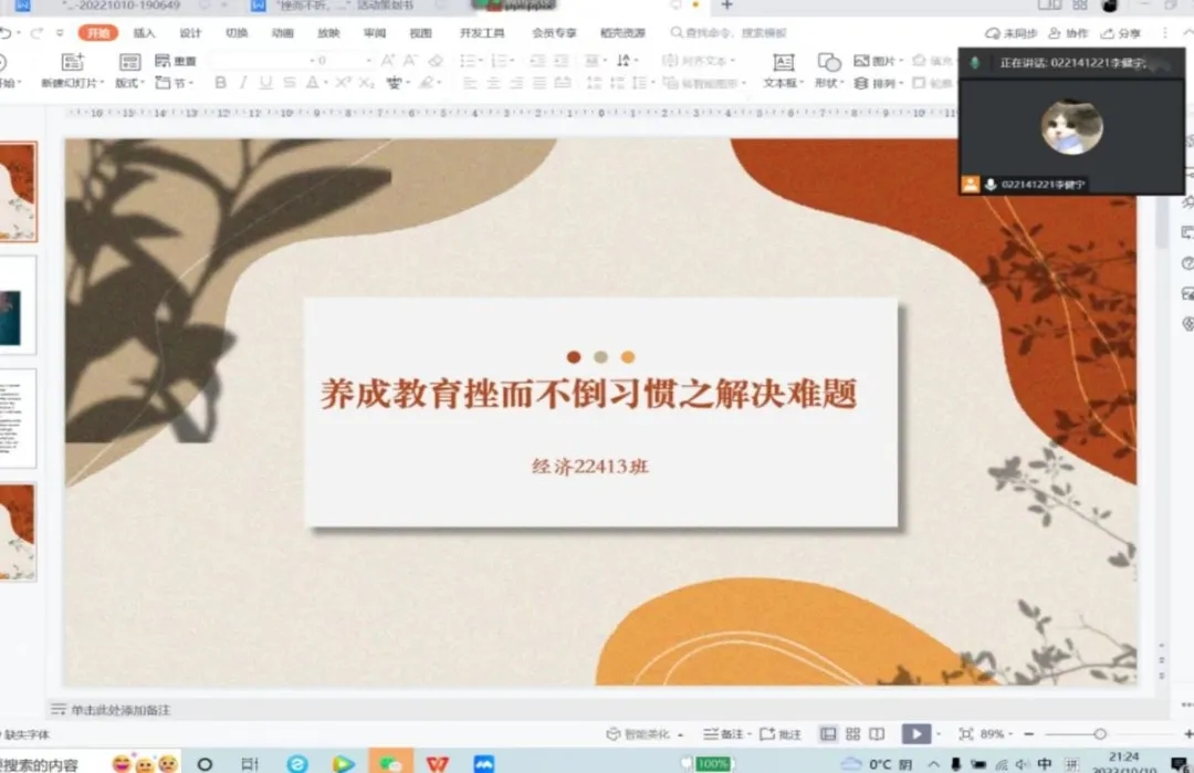 长风破浪会有时,直挂云帆济沧海。为使同学们能够正确看待挫折、积极面对挫折,掌握科学的挫折应对策略,同时提升学生的抗挫折能力,增强学生的意志力品质,yl6809永利官网集团养成教育之挫而不倒小组于2022年10月10日开展“挫而不倒,扬帆起航”线上主题活动,本次活动由李健宁主持,挫而不倒小组全员参加。