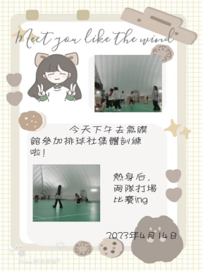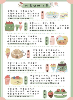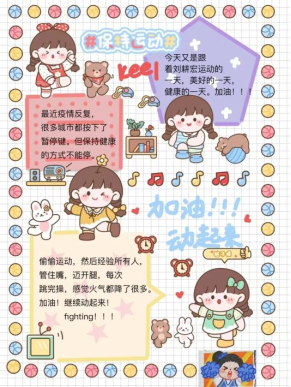 此次活动要求小组成员定期上交一份自己运动期间的手账,最后收齐集中展示。通过做手账活动,培养同学们热爱运动的习惯,在手账中监督自己运动打卡,记录运动期间的饮食,同时养成健康饮食的习惯。最后,同学们纷纷表示配合并积极参加活动,并会主动培养自己养成体育锻炼的好习惯。