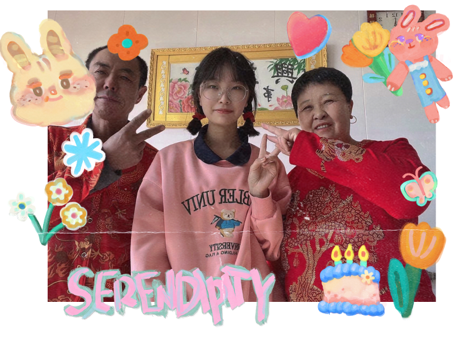 一个在闹一个在笑,我们彼此相亲相爱、欢声笑语。