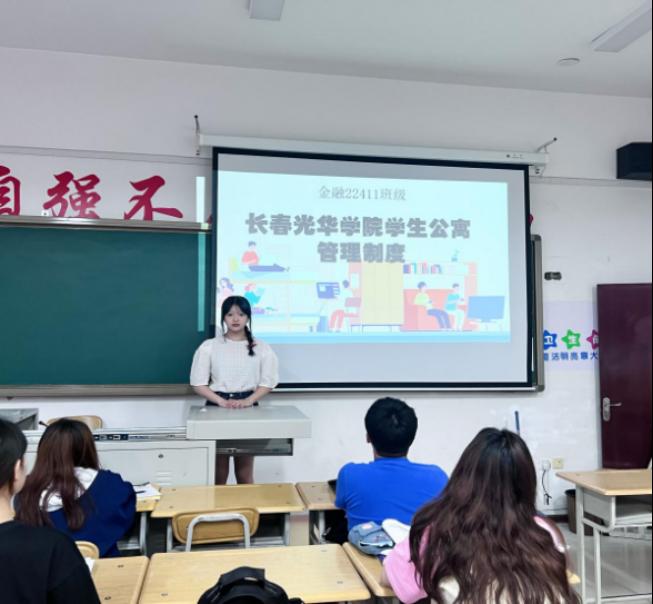 本次主题班会由各班长依次上台发言,以永利集团学生手册为依据进行学习教育,对惯性问题进行强调,也给同学们普及了相关的规定和相关惩处规定,并且对其规定进行宣读,在现场找几名同学进行调查,使同学们对宿舍管理的相关要求有一个更全面更深刻的了解,以达到“内化于心、外化于行”的效果。