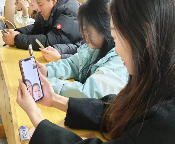接下来,由学生代表领唱《是妈妈是女儿》,歌声响彻整个教室,同学们闭上眼睛仔细去聆听,去感受歌词的深意。沈瑶滨还列举了一系列的行动来说明如何表达感恩之情,希望同学们能够付诸于行动,真正做到“感念于行”。最后,沈瑶滨组织同学们与各自的老师、父母或者朋友进行通话,使同学们感受到来自家长和老师的关怀与温暖。