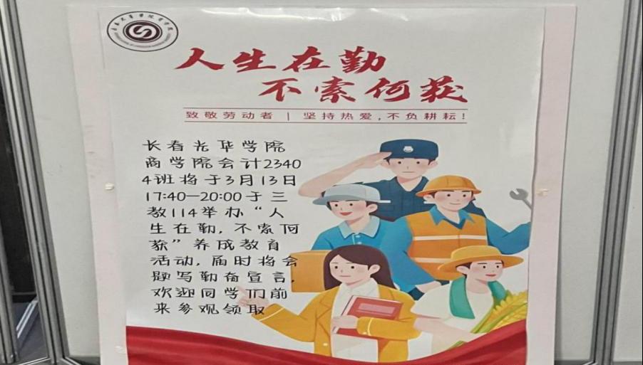 为弘扬勤奋精神,传播积极向上的正能量,提高同学们的学习积极性,激励大家用勤奋的态度对待学习和生活,yl6809永利养成教育勤奋小组于3月13日18时在第三教学楼114教室开展了“人生在勤,不索何获”主题活动,本次活动由会计23404班全体同学参加。