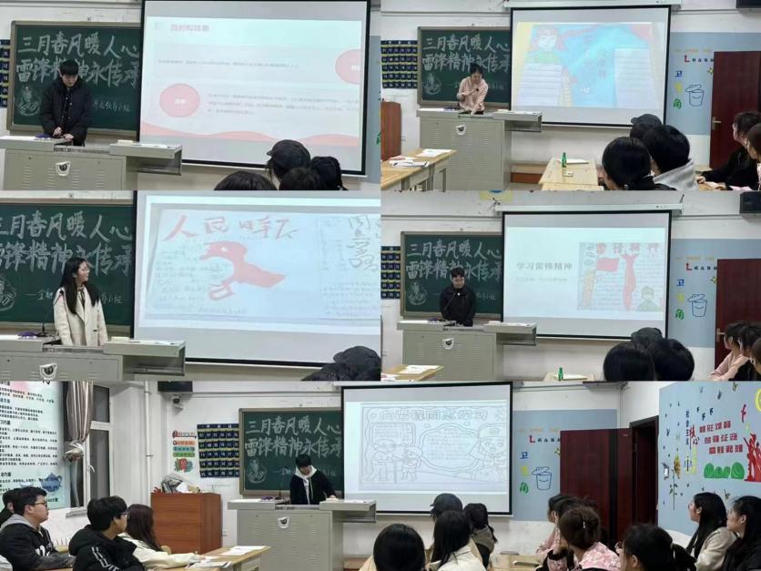 首先,班级负责人介绍了活动的基本流程并播放学习雷锋精神的纪录片。接着,每组的演讲人依次上台,他们展示了小组的手抄报作品,详细地介绍了创作理念与对雷锋精神的理解,让同学们进一步深入了解、感悟雷锋精神的可贵,弘扬助人为乐、甘于奉献、艰苦朴素、勤俭节约的优良传统,让雷锋精神代代相传。