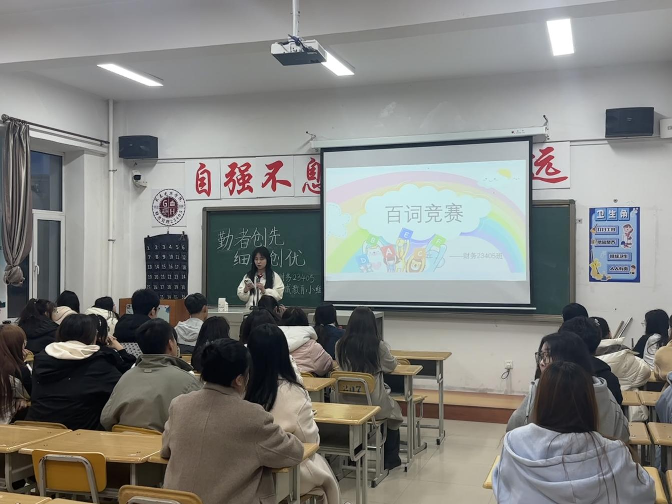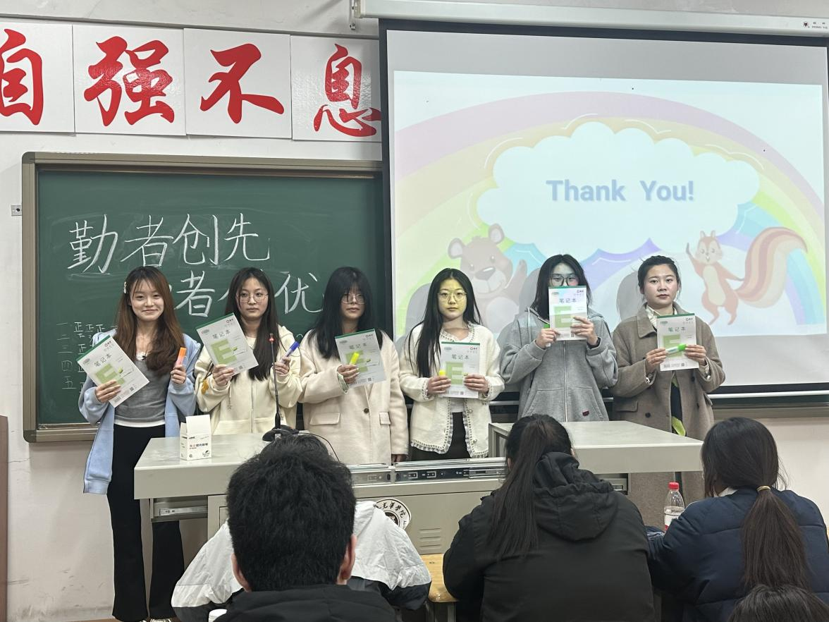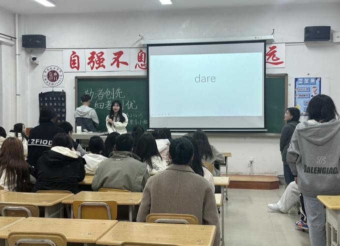 首先,主持人向同学们介绍了本次活动的流程以及游戏规则。随后,进行第一个环节——百词竞赛。在紧张的抢答环节中,同学们以小组为单位进行抢答,每个人都展现出了饱满的精神状态和沉着冷静的应对能力,信心满满地面对每一个问题,充分展现了自己的实力和风采。接着,由叶晶晶同学向大家分享自己在备考大学英语四级中的做题技巧以及学习经验。她分享的内容实用且具有启发性,为在场的学生们提供了宝贵的学习建议和方向。