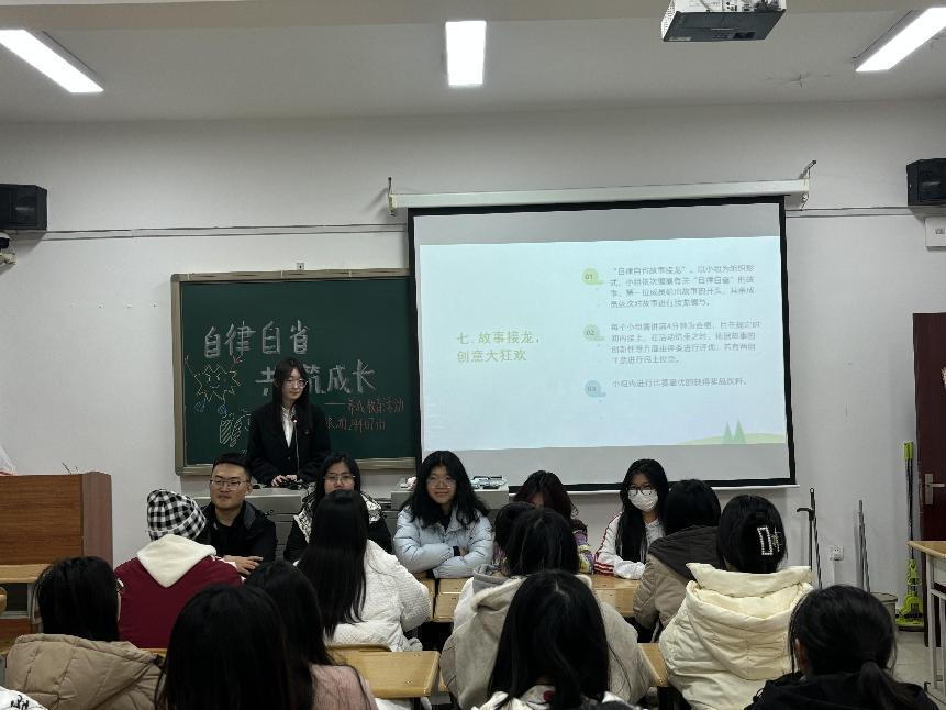 人之成长,靠时时自律自省。为提高学生的自律自省意识,帮助学生培养自我管理能力和学习能力,提升个人的综合素质,从而实现成长与蜕变。yl6809永利养成教育之自律自省小组开展“自律自省,共助成长”养成教育活动。活动过程中,同学们通过“知识问答”环节深入领悟关于自律自省的知识,并开展故事接龙活动,同学们共同完成“自律自省”的故事编撰,大家积极参与创作,不断发挥想象,一同探讨,现场气氛极为热烈。此次活动的成功举办,不仅能够帮助同学们养成良好的习惯,增强自律自省的能力,在学业和生活中精准定位不足,高效提升自我,还能够营造积极向上的班风,促进同学间相互学习、共同进步,增强班级凝聚力,为构建和谐有序、充满活力的班级氛围奠定坚实基础。