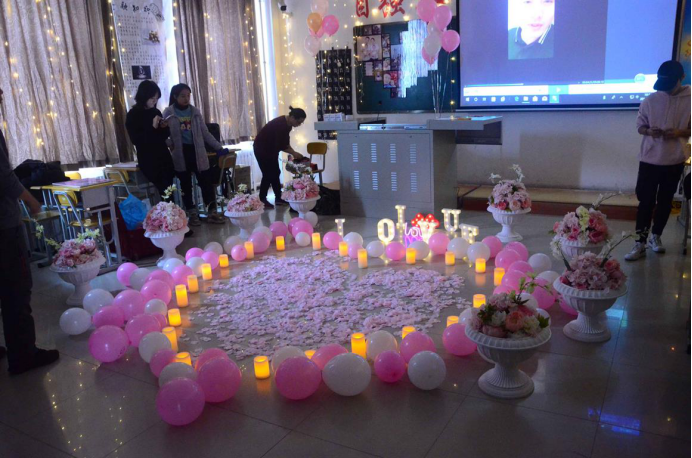 鲜花、气球、彩灯、蜡烛点缀着一场充满温情、梦想和感恩的特殊活动。11月12日上午,在永利集团金融学院校友分会的指导老师关司祺和校友分会主席李笑涵的组织下,同学们对三教214教室进行着紧锣密鼓的布置,大屏幕上的视频也经过了一遍遍的调试。而这一切精心的准备都是为了迎接几位特别的客人,也是这场活动的主角,他们就是我校金融学院的校友曾雨柯、杨婧以及他们爱情的结晶——一对可爱的双胞胎男孩。