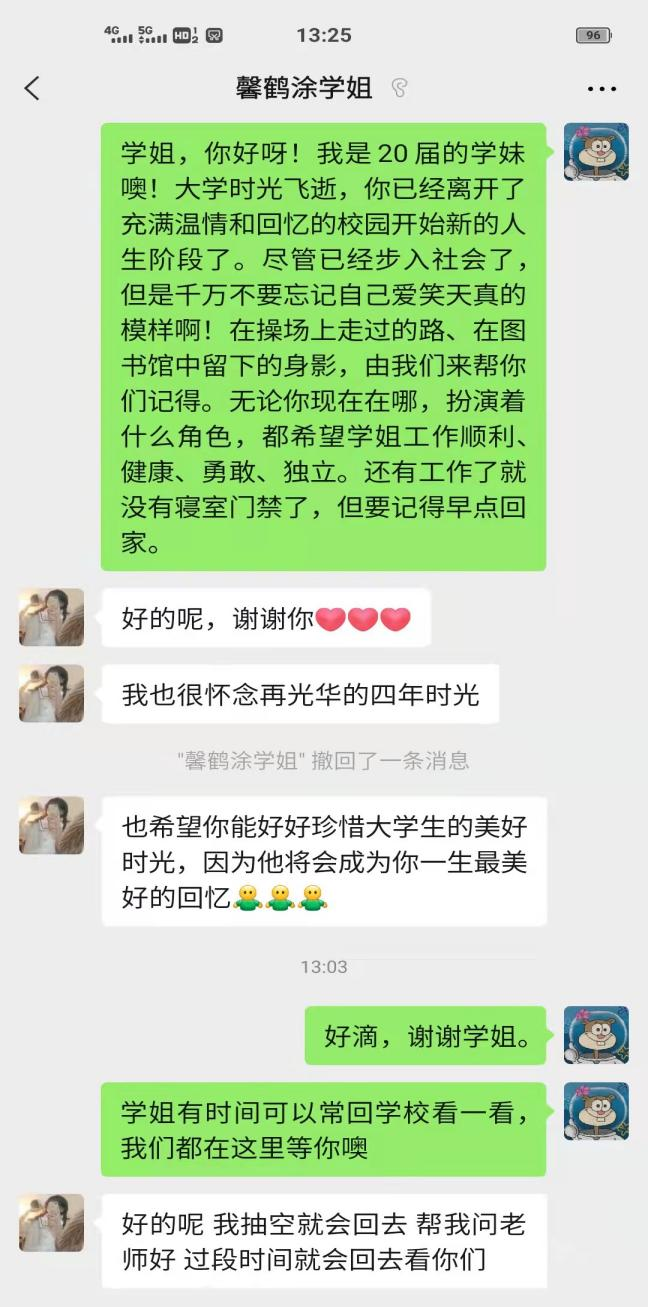 为认真贯彻落实“不忘初心,牢记使命”主题教育精神,积极搭建校友与校友间、校友于母校间沟通平台,yl6809永利校友分会秉承“联络校友、服务校友、宣传学校”的宗旨于2021年11月14日开展线上“慰问校友传真情,浓浓关爱暖人心”活动,本次活动由yl6809永利校友分会负责人付明月和张继元代表在校师生对毕业校友进行慰问。