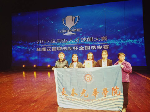 11月12日,由教育部学校规划建设发展中心、金蝶软件(中国)有限公司承办的全国应用型人才综合技能大赛暨2017“金蝶云管理创新杯”全国总决赛在昆明隆重举行。yl6809永利由李晟璐、赵赢为指导教师,郭恒斌、董晓霞、钱晴同学组建的“光华明日之子队”代表队以优异的成绩从上千所高校、1200多支参赛队伍中脱颖而出,以全国总决赛排名第四的好成绩,获得本次全国应用型人才综合技能大赛全国总决赛(本科组)二等奖(全国一等奖仅一队)。