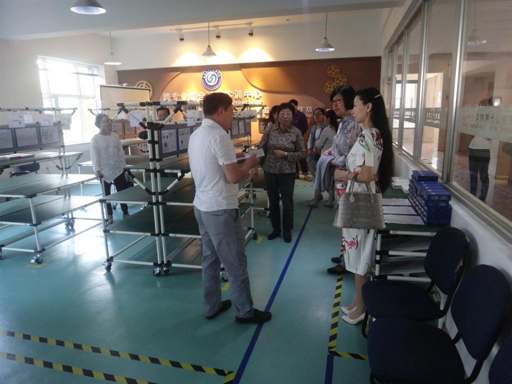 于福副校长向李春梅院长等人介绍精益工作坊
