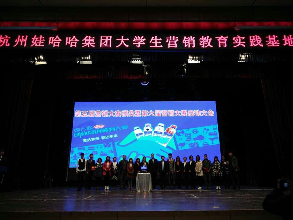 为响应李强总理“全民创业”的号召,进一步提高学生创新精神和创业能力,落实以创业带动就业的重要举措。娃哈哈集团在10月11日在我校大礼堂召开了杭州娃哈哈第五届营销大赛暨第六届启动仪式。