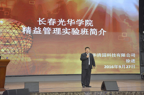 随后,长春华清园科技有限公司副总经理徐进详细介绍了公司基本情况、实验班的定位、培养目标、培养内容和方法、课堂组织形式、专家导师、实习及就业企业、就业安排及要求、职业认证、实验班考核录取安排等学生关心的热点问题。他强调,精益管理实验班将秉承“习实务、融校企、塑能力、促成长”的理念,培养学生卓越管理能力,使学生真正成为能够给别人创造价值的人。