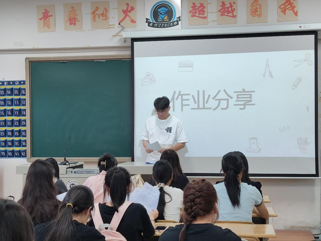 紧接着,主持人组织同学们进行小组交流,在同学们分享自己的作业过程中,取长补短,增长经验,对其他同学提出建议时,对自己更加严格要求。在随后开展的“4+X”演讲活动中,演讲者通过分享自己在假期的实践感悟,激发同学们对学习的热爱,对假期实践的期待。同学们纷纷讨论,相互学习共同进步。