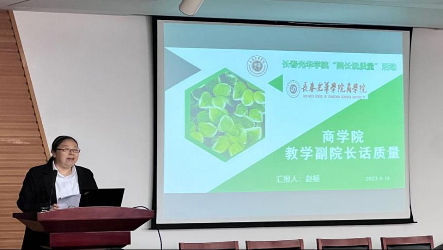 随后,赵畅副院长分别从教学建设与改革、质量管理与特色发展和存在的主要问题与今后努力方向等三个方面梳理了学院近五年来为提高教学质量所采取的举措以及取得的成效。她指出,学院重点打造了教学型与科研型两支教师团队,同时也聘请了众多企业实务专家进行实践课程教学。最后,赵畅副院长强调,在教学管理工作中要始终牢记教学是中心,质量是生命,教学管理者与广大教师要把努力提升教学质量作为工作重点,关注每一个学生的成长与发展。