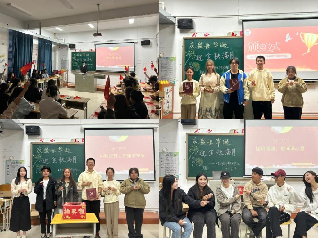 同祖国共风华,寄相思予明月。共欣赏,良辰美景。阴晴圆缺都休说,且喜人间好时节。好时节,愿得年年,常见中秋月。诗词大富翁环节正式开始!同学们都积极回答,展示着自己的风采。这个中秋,同学们一起穿越到诗中,感悟了中华美学的意蕴,接着进行了猜灯谜游戏,灯谜涵盖中秋民俗、文学常识、人名、食品等内容的谜题融知识性和趣味性于一体。同学们认真思考,积极踊跃参加。随后,同学们还进行了谁是卧底游戏并对诗词大富翁积分前五的进行颁奖。