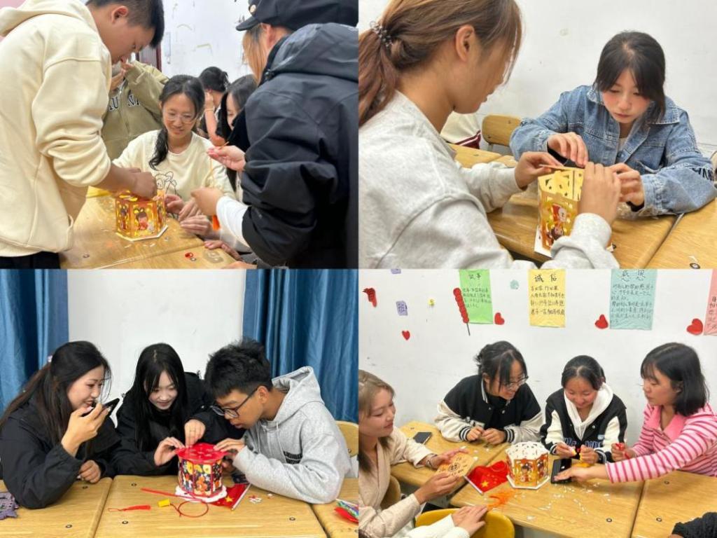 彩灯邀明月,中秋情意浓!制作灯笼是中秋节的传统习俗之一。在学生干部的讲解下,同学们体验了自己制作灯笼的魅力。同学们凭借着自己的创作能力制作出了一盏精巧的灯笼,大家兴高采烈地相互展示自己的作品,现场一片欢声笑语。在制作灯笼的过程中大家还互相交流心得体会,分享制作经验和技巧,共同学习进步,此外,同学们还了解了一些关于灯笼的寓意,在轻松愉快的氛围中同学们加深了对传统节日的了解。