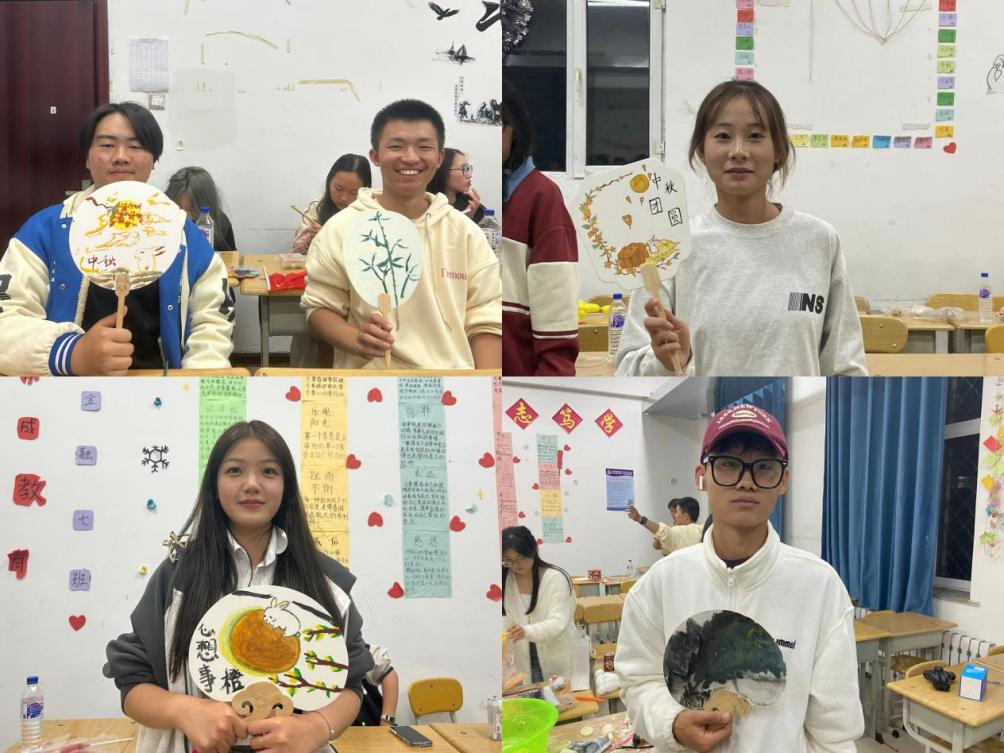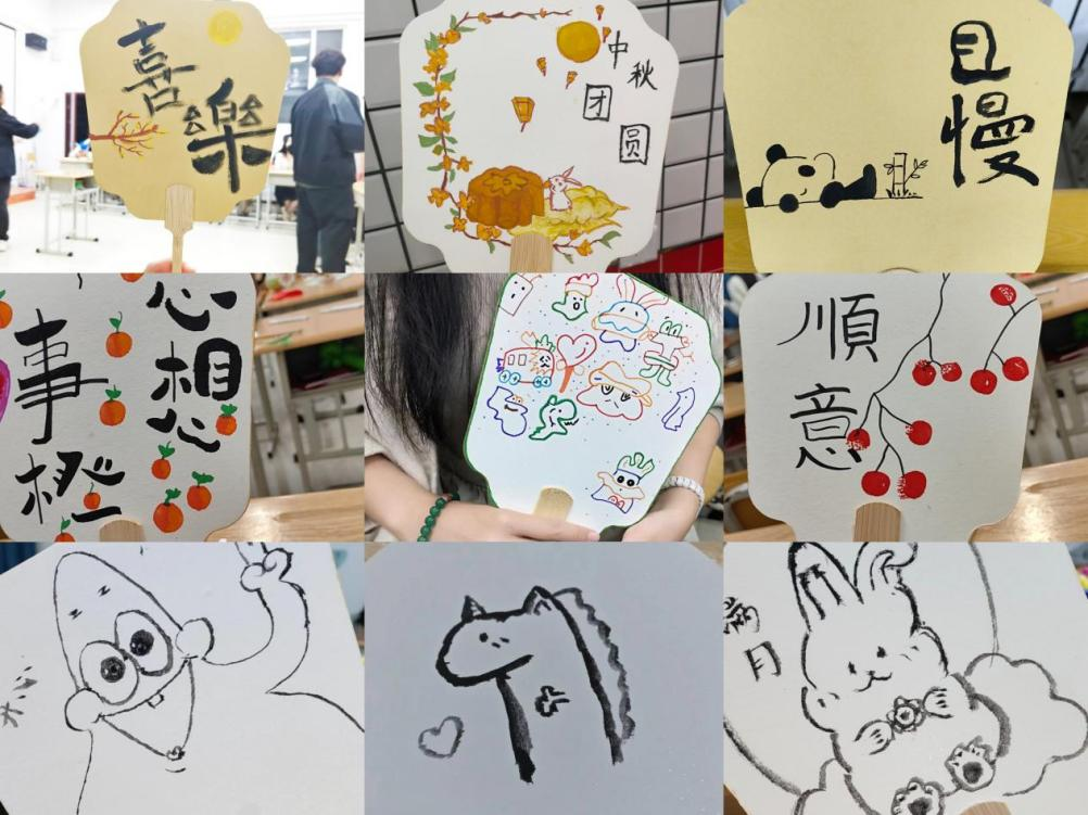 但愿人长久,千里共婵娟。团扇又称“合欢扇”,象征着团圆和美、幸福长久。在主持人的组织下,学生干部为同学们准备了画笔、颜料和团扇等材料。之后,同学们带着“团圆、友善、吉祥、如意”的美好寓意,制作出一个个精美的团扇,既提高了同学们的创作能力和审美情趣,更让他们切实感受到了中国传统艺术的独特魅力。