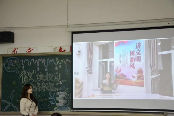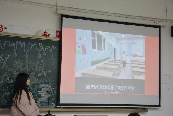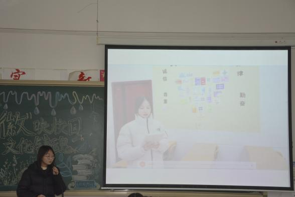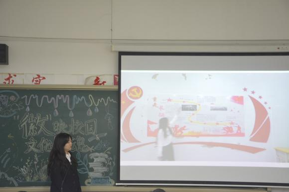 文化墙设计讲解也是此次比赛重要的一部分。“让墙壁说话”把教室的每一面墙都变成营造文化氛围的阵地,通过以弘扬爱国精神为主题,不仅让同学们更好地了解和传承红色文化,而且激励着我们不断前行。本次的文化墙设计演讲采取了视频讲解的形式,各班文化墙演讲者按顺序依次进行讲解。视频主体色彩和文字的精心搭配,展现了独属于班级的精神风貌和个性风采。