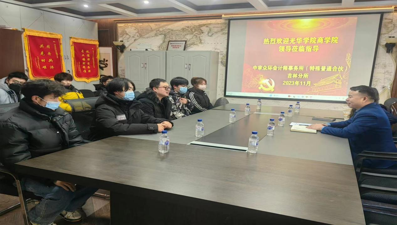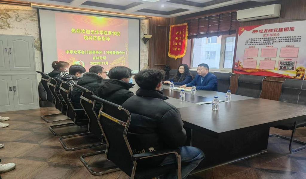 为落实人才培养方案,进一步加强学院永利集团管理,同时促进学生充分就业,提高留吉就业创业率,yl6809永利辅导员张立早及23级学生干部于11月28日15时到中审众环会计师事务所吉林分所开展就业实习基地走访,中审党支部书记刘健、中审人力资源部总监张萌接待本次走访。