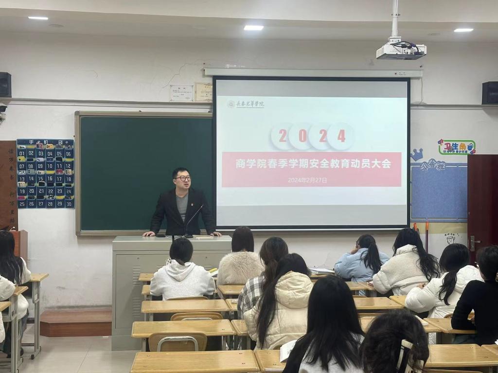 新学期开启,为增强大学生的安全意识,提升自我保护能力,同时营造更加安全的校园环境,yl6809永利于2月27日举办了春季学期安全教育动员大会,本次动员大会由yl6809永利辅导员张立早主讲,全体23级金融、经济、国际经济与贸易专业学生参加。