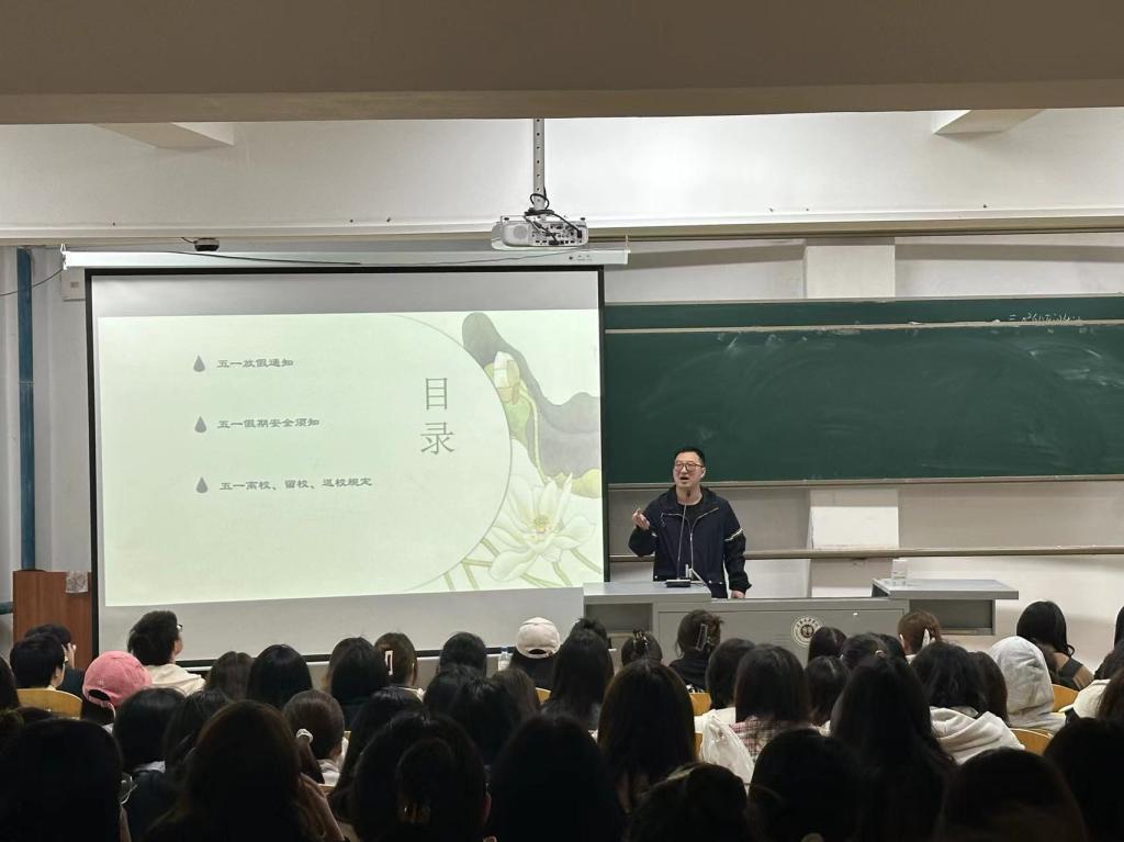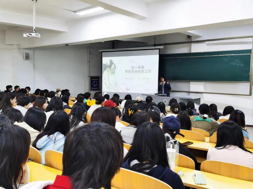 在主题班会上,各年级辅导员强调,在“五一”假期选择离校的同学,要注意出行安全,乘坐具有合法资质的车辆,注意道路交通安全,要选择正规住宿地点,出行游玩中尽量集体行动。对于留校的同学们,要时刻注意自己的寝室财物和水电,维护好宿舍安全是安全教育的主要内容,不得使用违规电器,不在无人时使用充电设备。