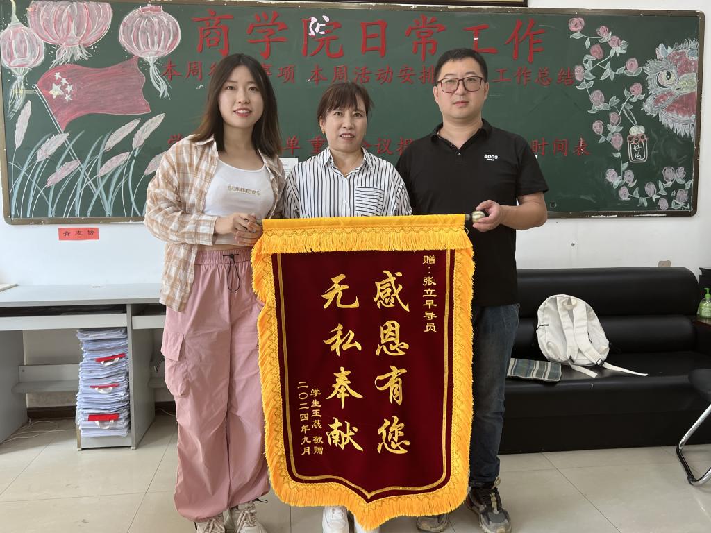 渤海湾畔,我院优秀校友2015级会计学专业王蕊不远千里,重返校园,为辅导员张立早老师送上致谢锦旗,身为天津市公安局的一名民警在基层扎根,她深知肩上的责任与使命;作为校友,希望能够将自己不断奋斗的精神传承,激励更多的学子追求自己的理想,勇敢面对未来的挑战。