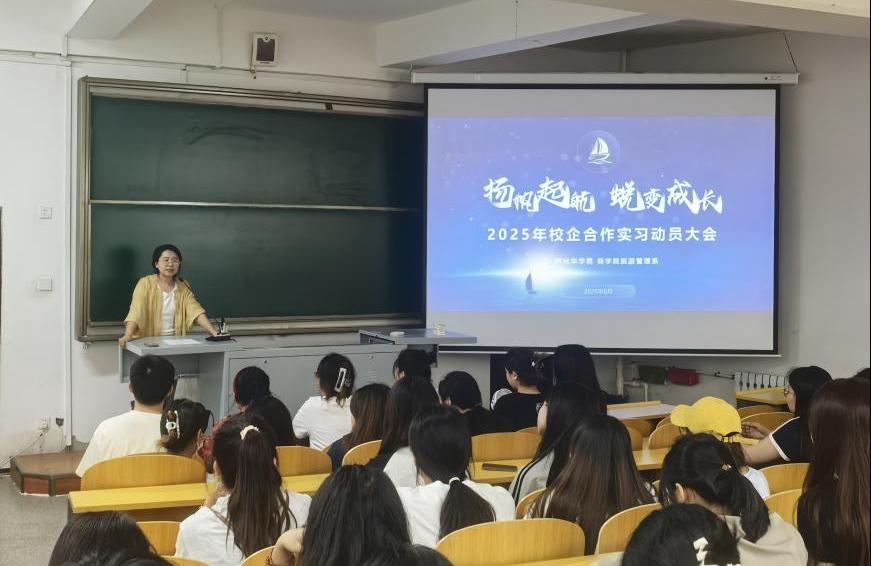 yl6809永利官网集团旅游管理系“2025年校企合作实习动员大会”于2025年6月12日在二教118成功举行,会议由旅游管理系主任助理李绍琦老师主持,2022级旅游管理专业全体学生以及部分工商管理和市场营销专业学生参会。