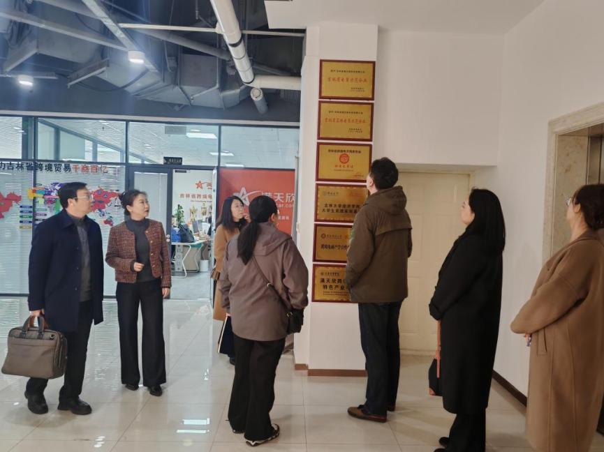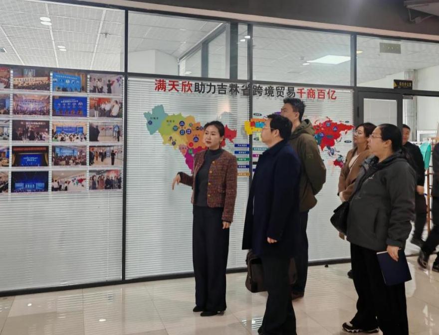 在魏欣董事长的带领下,调研组参观了企业核心业务部门,深入了解其运营模式及技术应用。吉林省满天欣科技有限公司以跨境电商与智能电销为核心业务模块,经营范围涵盖光电产业、汽车零部件、木制品加工等领域。魏欣董事长特别提到,企业对“运营型人才”和“具备扎实语言能力的业务型人才”需求较为迫切,尤其在跨境电商板块,亟需能适应国际化竞争的应用型人才。