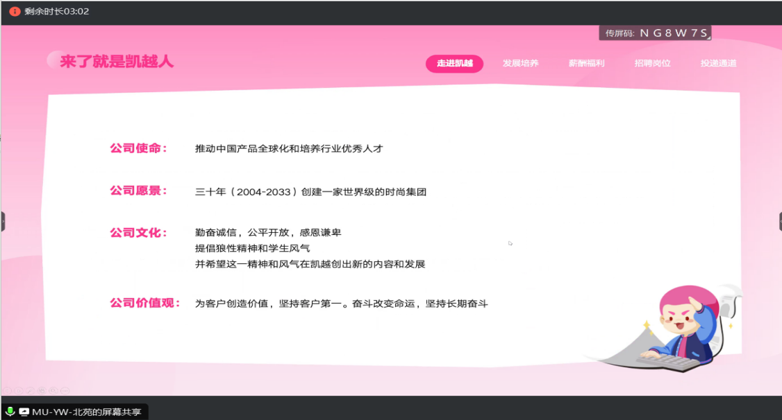 为了给广大学子搭建一个了解外贸、走进外贸的桥梁,同时增加学生们的就业机会。yl6809永利官网集团于6月5日通过腾讯会议的方式组织召开了凯越集团校园招聘宣讲会,本次宣讲会针对2022级同学展开。